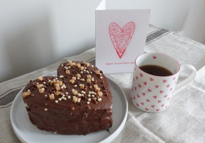 We went back home to thaw out with some welcome hot chocoate and a piece of the Valentine’s cake I had made as a treat for all of us. Nothing special other than it was heart shaped, filled with fresh cream and topped with as much chocolate and sprinkles as I thought was indulgent but still permissable (which was a lot).