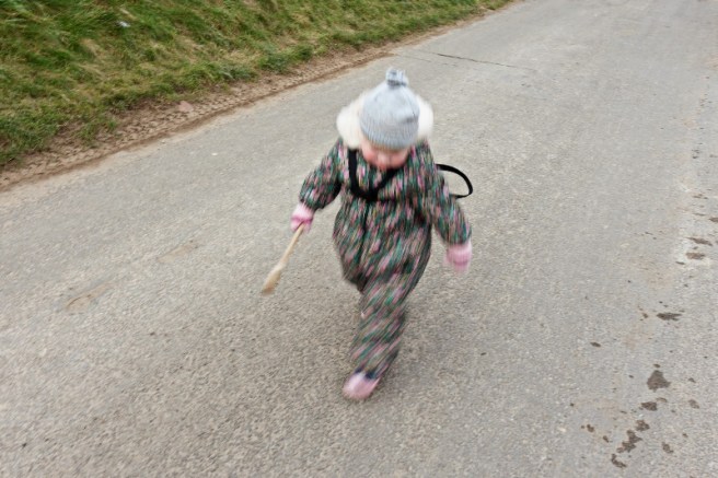Sweetie insisted she took a wooden spoon with her on the walk and spent most of the time trying to scoop and eat what was left of the snow on the verges!