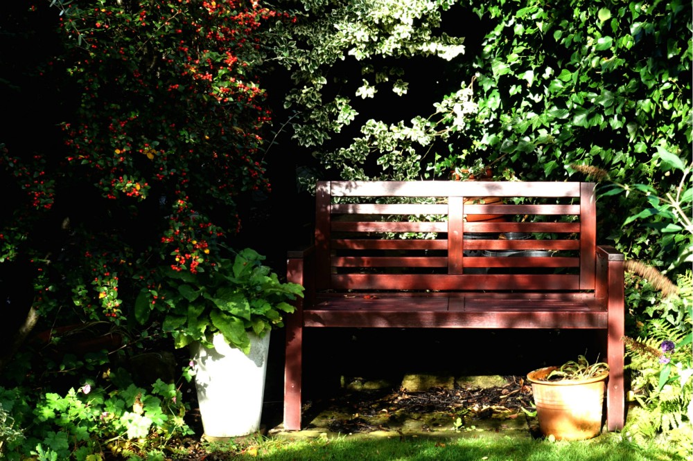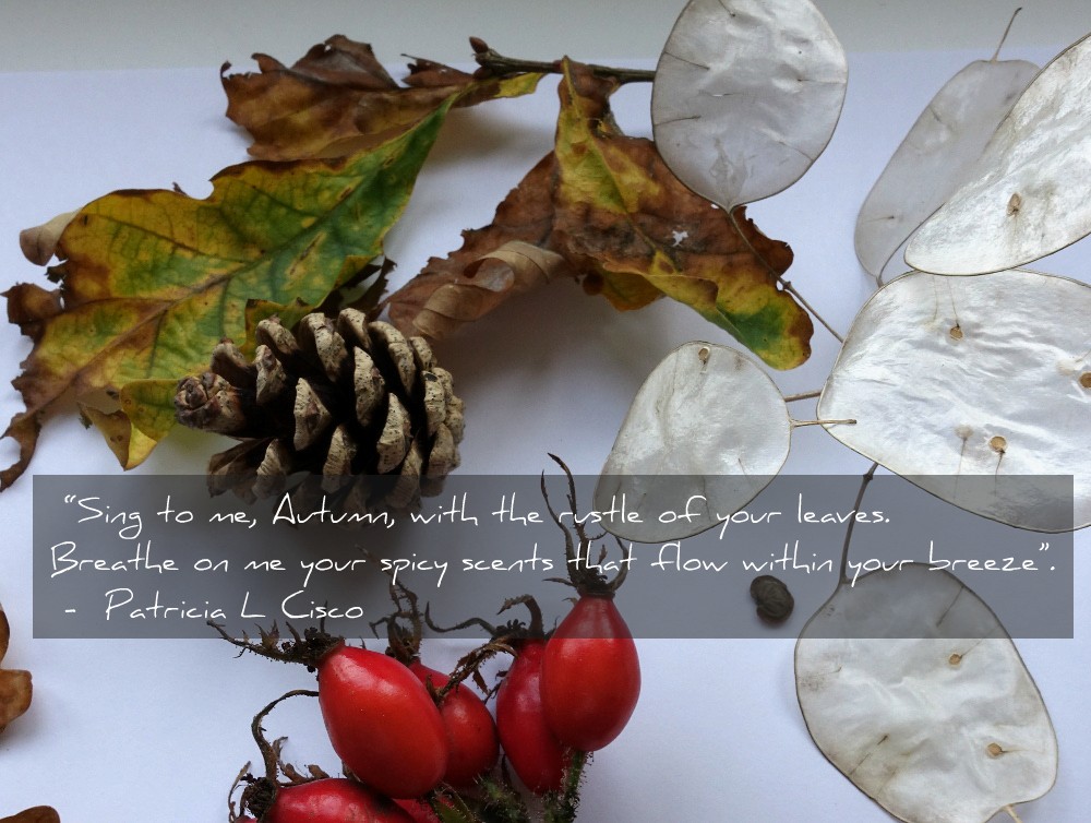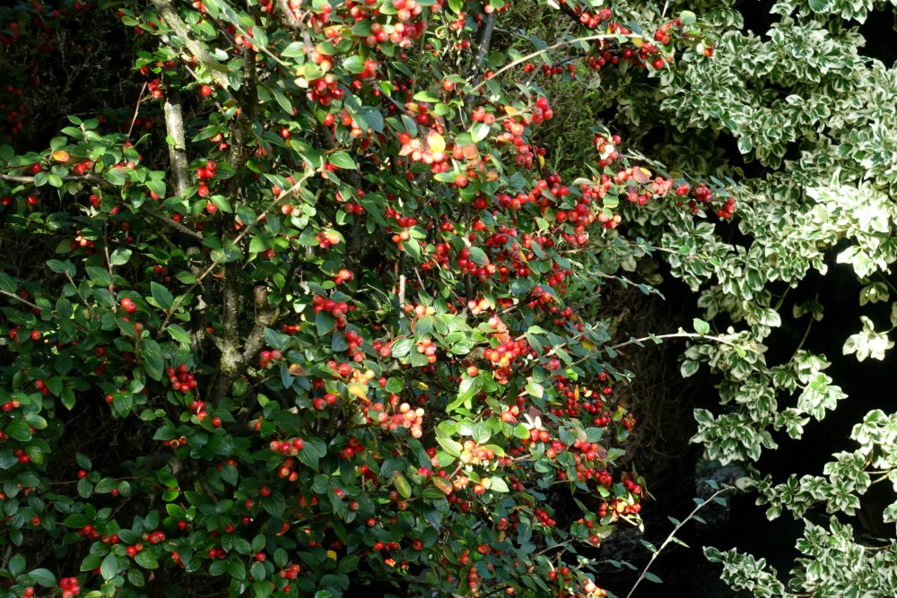 The words of the poem ‘Sing to me, Autumn’ are a perfect reflection of this moment and encapsulate the beauty of the season – the sunlight streaming onto the garden this morning was so beautiful – casting deep shadows whilst highlighting the crimson red berries of the cotoneaster… I reached for my camera but it is so hard to get a good photo. There is an abundance of berries down by the seat – we have left it out a little longer as it is such a nice sheltered place to sit and admire the last of the season’s flowers.