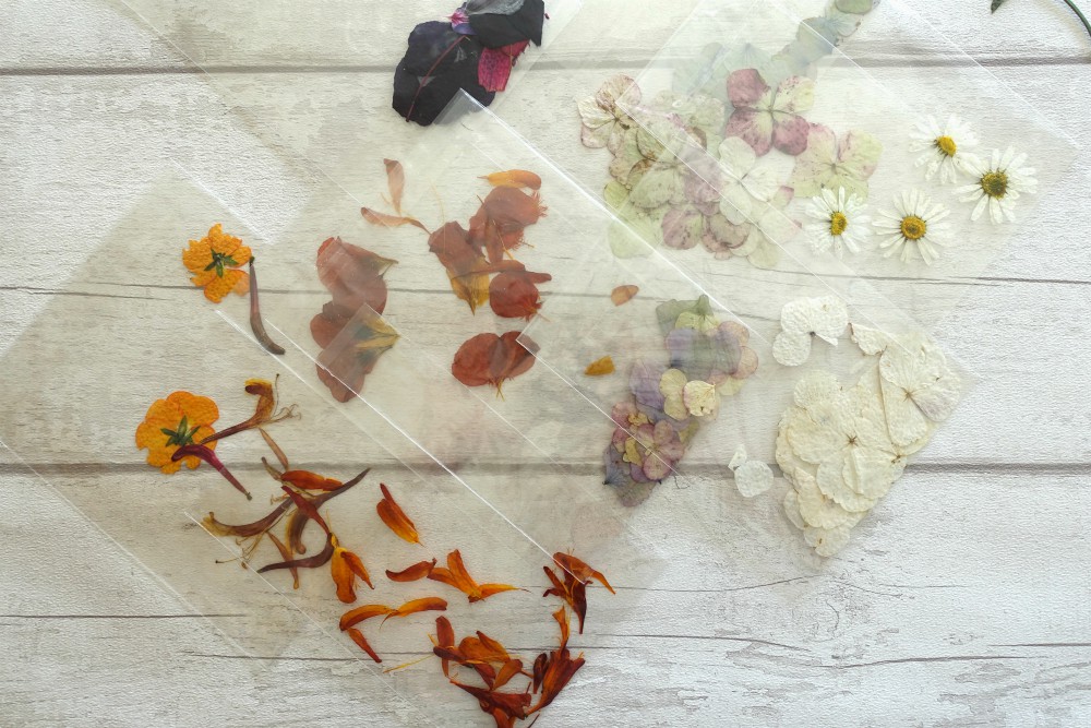 Remember I collected a few flower heads and petals to press at the caravan – well they are now quite flat and ready to go. The only means of pressing them at the caravan was to use some kitchen roll between the pages of a notebook so the textured pattern of small dots on the kitchen roll has imprinted onto the petals but I quite like it! I have bundled them into some cellophane bags to protect them. My favourites must be the delicate blue campanula, the white daisy heads of the chamomile and the vintage hues of the hydrangea petals. I just have to find a little time to turn them into some cards and tags.