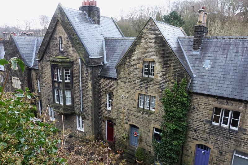 This block housed an old fashioned jeweller in the corner shop; in the upstairs windows you could see them at work with the machinery on old wooden benches. The end of the run was obviously past restoration but they have added a new section to compliment the terrace.