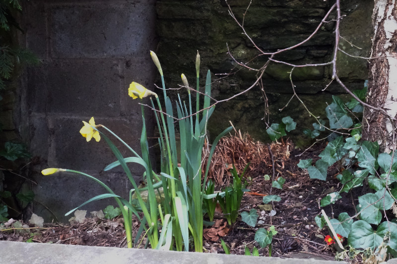 The pond is full of rotting leaves as we couldn’t clean it out last year because of the restrictions on our visits or put the pond net over last September to catch the autumn leaf fall. Thankfully, with little rain it is quite dry so will be easier to scoop out and clean then refill with fresh water though it is not a pleasant job and not one I look forward to. The primulas have multiplied and look stunning, I do need to plant some more of the deep orange coloured primulas though as they appear to have gone.