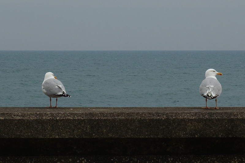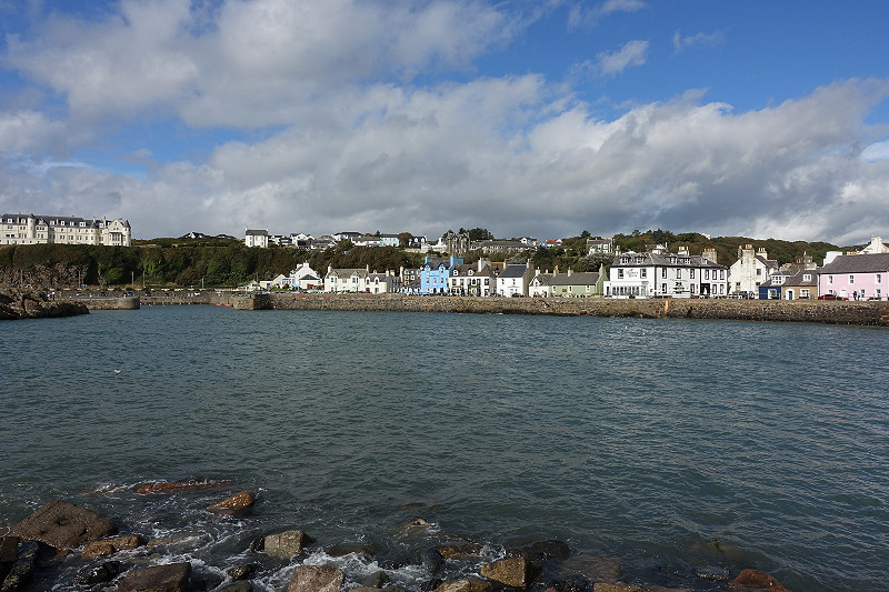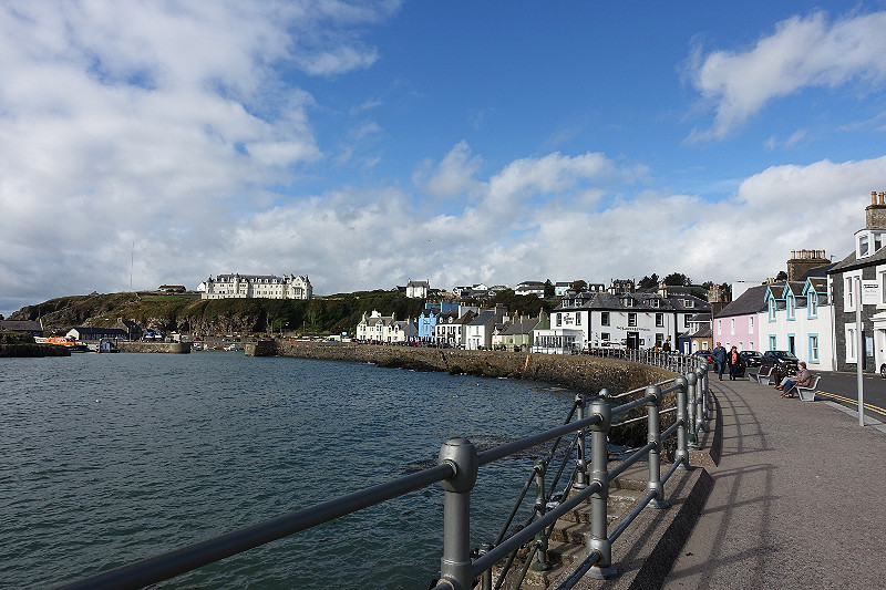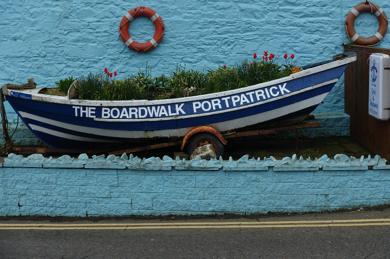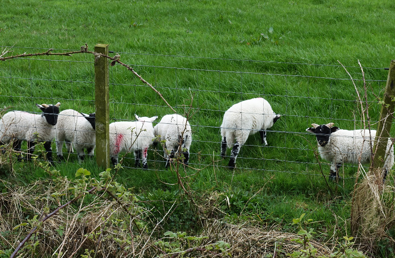 We took some time out on Thursday to go over to Portpatrick, a little harbour village known locally as the Port. It was an overcast and grey day with a cool wind coming off the Irish sea. The fields were full of baby lambs of various sizes and markings – these playful ones came to the fence when we stopped the car to look at them.