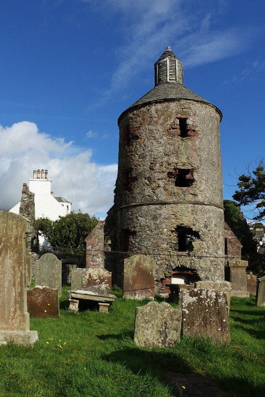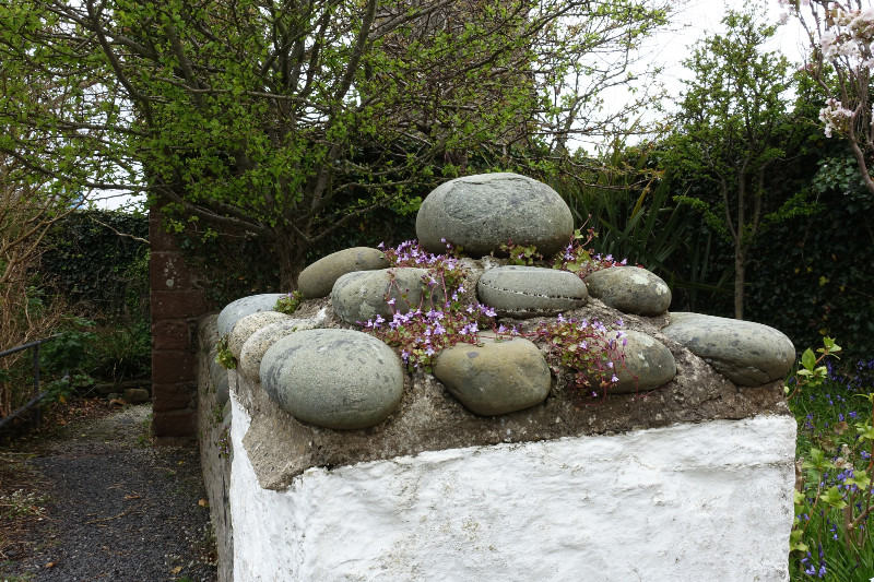 We headed for the old parish church, abandoned long ago in 1842 and now just a ruin, and situated on the north side of St Patrick Street in the centre of the village. Strangely the church is dedicated to Saint Andrew rather than Saint Patrick and was built in 1628-29 to serve the newly created Portpatrick parish. The building is in a cruciform or Greek cross plan and may be the earliest cruciform church in Galloway.