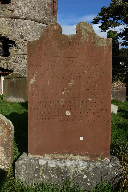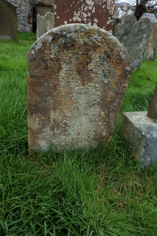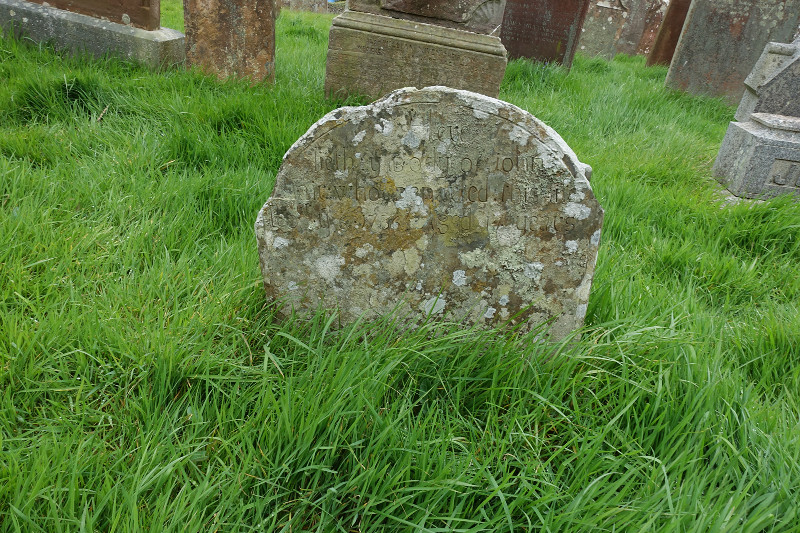 The adjacent graveyard continued to be used for burial until the later 19th century when it was replaced by the New Cemetery on Portree Terrace. Below must be one of the earliest graves.
