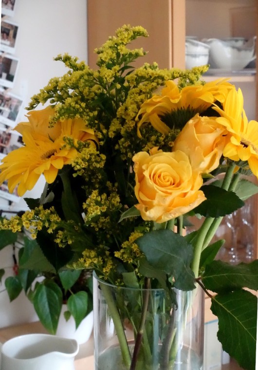 In the afternoon I was suddenly called to the training room for a meeting which ‘surprise’ turned out to be a buffet spread laid out with Prosecco, party food and cupcakes and attended by all the staff and directors. There were speeches and presentations, more bouquets, gifts and wonderful words of thanks and appreciation for my hard work over the last 18, almost 19 years. So my house is full of beautiful flowers once again and my birthday cards had to move over to make room for my leaving and wedding anniversary cards.