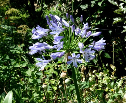 The Rosa Rugosa hedge down the lane has huge hips forming already and the Agapanthus are just loving this sun.