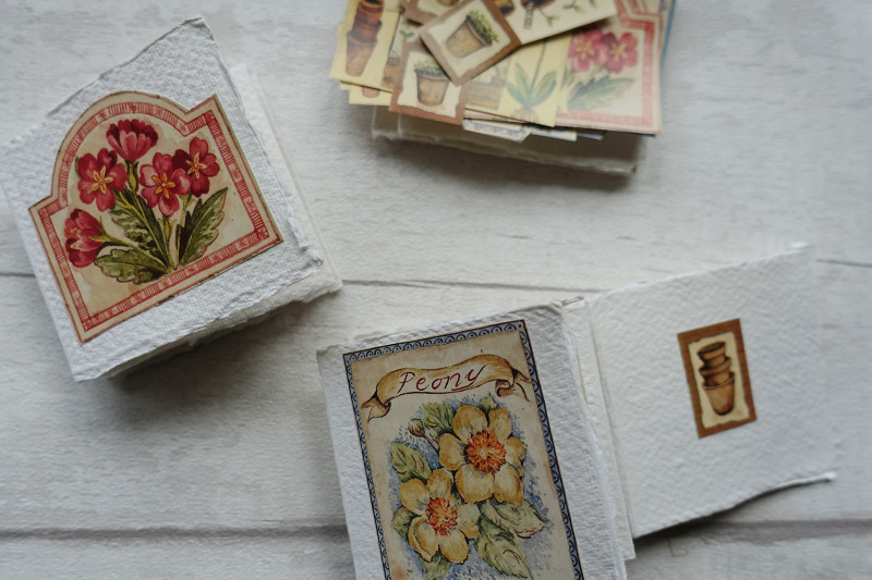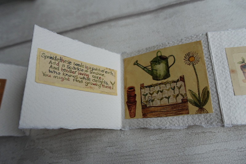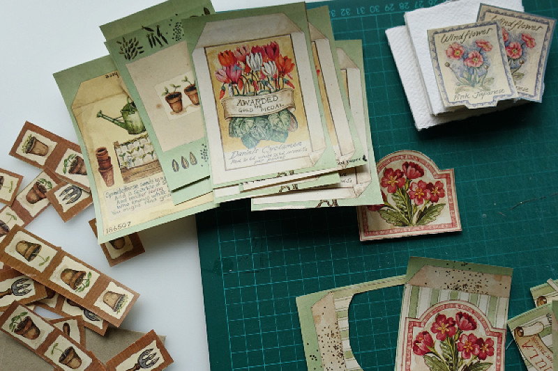 ….I decided to turn these cute little pictures into tiny cards – the idea being that I will send them to friends and family with a pack of flower seeds included.