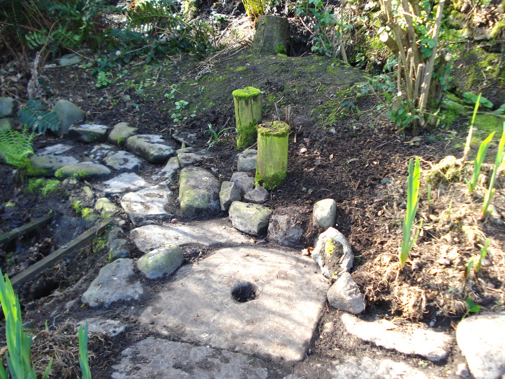 We added a plank to the top of the old posts to form a seat and planted some Primulas here and there which are nicely self seeding around the pond.
