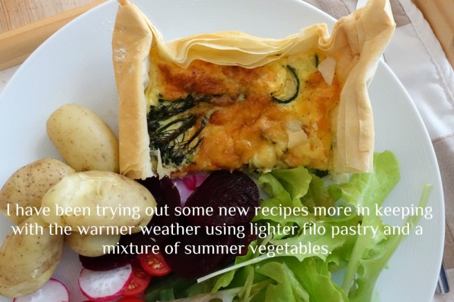 We also saw my mum last weekend; it was lovely to see the smile on her face. We had homemade tomato and red pepper soup for lunch followed by a homemade cheese and tomato quiche, new potatoes and salad and a fresh cream chocolate sponge for dessert. All her favourite foods. We left two large slices of cake in the fridge for later….she was so grateful for our visit, it really cheered her up and we had a lovely chat, not that either of us had done very much to talk about.
