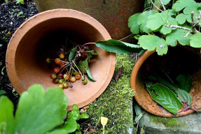 The garden has been really neglected this week but I must give it some attention before we go away. Besides being quite windswept it is looking rather sad and sorry; flowers struggling to come out and those that have are wet and soggy. The lawns are waiting to be cut and everywhere we have tiny cherries blown from the tree – sadly, too hard and bitter to eat.