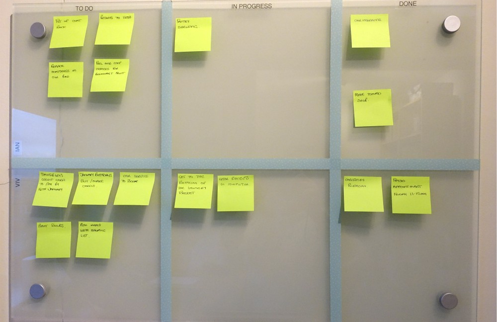 By the end of the morning the bedrooms were reasonably clean again and I had two more post it notes to move into the ‘Done’ column of my kanban board leaving me feeling quite pleased with myself. The laundry and receipts are still ‘in progress’ and until these are completed I will not be starting any other project for the time being.