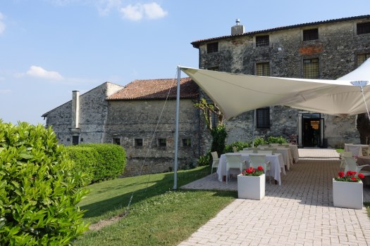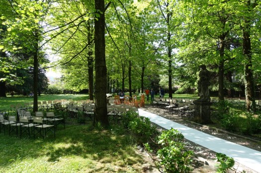 We had to lay all this out ourselves the evening before the wedding – we had loads of helpers and whilst we were busy moving and laying and tying and draping the local amateur dramatics society were rehearsing their muder mystery play on the stage. It was a bit bizarre!