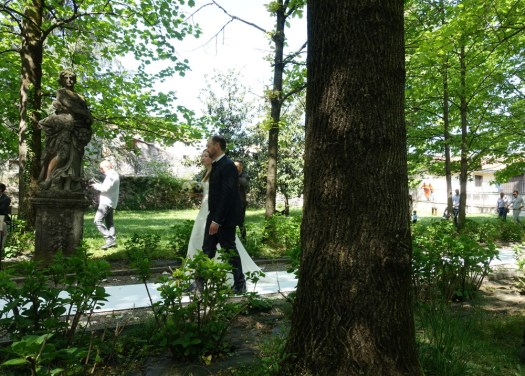 We used a professional photographer that was both fun and willing to take a mix of formal and more informal shots. He certainly kept all our guests entertained with his humour and he took us all for a wander around Masham capturing some very unusual scenes – these are two of my favourite – in the telephone box on the left and outside the Bah Humbugs shop.