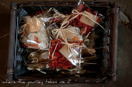 The favours were in plain calico bags decorated with pine cones and dried ferns with hand written craft labels.