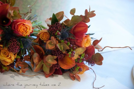 The wedding bouquets were made by a florist in a tiny shop in Bedale and were absolutely beautiful – deep, rich Autumn colours.