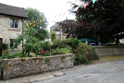 There is water everywhere in Stoney Middleton – running alongside the road and under bridges like a mini canal or wending its way down little purpose-built gulleys at the edge of the lane – the children just love it, splashing about and jumping in – the duck races taking place later – there are no railings so you do have to mind your step. I hung onto mum for dear life so that she did not end up in the stream.