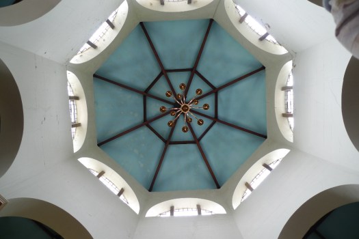 The pews are positioned around the central and magnificent tiled floor which is directly below the eight sky lights above in the domed roof. It is very light and bright and the arrangement has a very cosy and intimate feel almost resembling a Quaker Meeting House and I imagine perfect for small weddings .