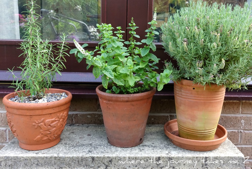 I potted up the rosemary and mint I had bought individually – they are to go up to the cottage garden when I have prepared a space up there. The feverfew has done well it took me ages for me to find some – I love the little white flowers with the yellow centres they really brighten up a corner.