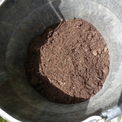I use a few old stones in the bottom of my pots for drainage and as it is a tall pot I throw in some pieces of broken up polystyrene packaging and on top of this I fill the bottom half of the pot with the awful rubbish potting compost seen above on the left and top up with the better compost on the right; mixed with well rotted manure and a sprinkling of moisture retaining crystals.