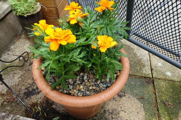I decided to put the tray of French Marigolds in here and place them as near to the salad boxes as possible in the hope that they will keep any pests off my crops.