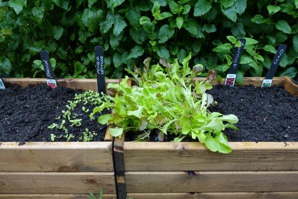 On the way we visited a lovely garden centre outside of Matlock to look at some wooden boxes suitable for growing a few salad vegeatables on the patio. They had some very reasonably priced raised vegetable boxes but they would be far too big for the tiny space – so we opted for these smaller ones at ÂŁ19.99 each.